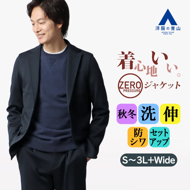 【洋服の青山】ゼロプレッシャースーツ ジャケット 秋冬 ネイビー 紺 無地 セットアップ 単品 メンズ テーラード 大きいサイズ 洗える ストレッチ 動きやすい