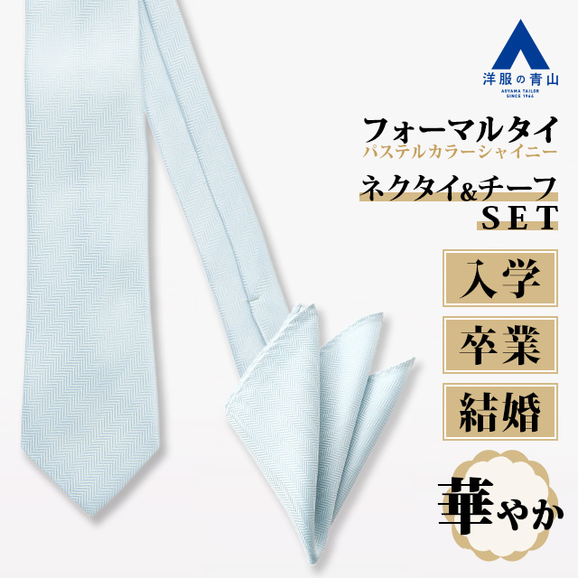 【洋服の青山】《最短当日発送》チーフ付き カラーフォーマルタイ ネクタイ ポケットチーフ 2点セット パステルカラー ブルー 青 慶事 華やか セレモニー 式典