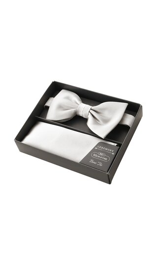 【洋服の青山】シルバー系 蝶ネクタイ&ポケットチーフ【シルク】 【蝶ネクタイ】 リボン:約6.5×11.0cm 首周り:50cmまで対応 【チーフ】 約23.0×23.0cm