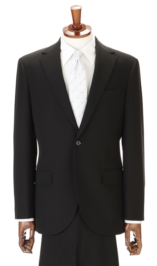 【洋服の青山】濃染加工 礼服 メンズ スリム 秋冬用 ウール100% シングル 2ボタン 総裏 センターベント アジャスター付き ブラックフォーマル フォーマルスーツ