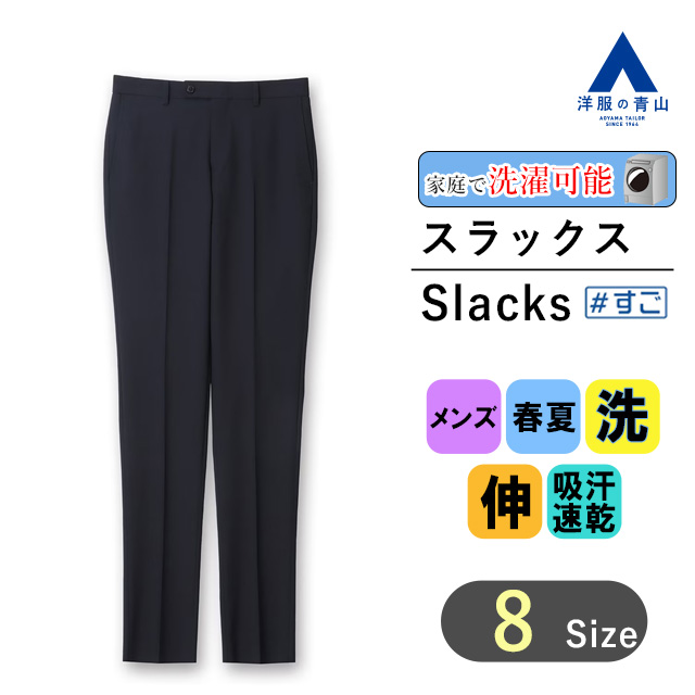 【洋服の青山】スラックス 春夏 ネイビー系 スタイリッシュスラックス ノータック 通気性 薄手 涼しい 吸汗速乾 ドライ クール メンズ 通勤 オフィス カジュアル