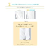 『NON IRONMAX』は、日清紡『APOLLOCOT』を使用したしなやかな質感・光沢感のある圧倒的な形態安定性を誇るワイシャツです。ストレッチ生地の心地よい伸縮性により、快適な着心地をサポート。また、襟・袖口に防汚加工を施しているので汚れが付きにくく、落ちやすいのもうれしい機能。速乾性に優れているため、夜、洗濯してしわを伸ばして干せば、翌朝ノンアイロンで着られます。厳選された生地を専用の工場で型紙から縫製仕様の細部まで拘りをもって生産しました。