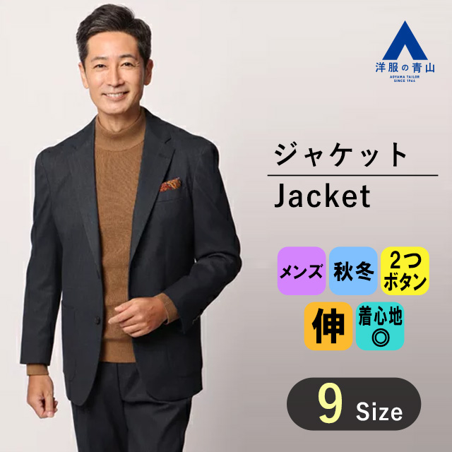 【洋服の青山】ジャケット メンズ 秋冬用 ネイビー 紺 織柄 セットアップ可 大きいサイズ シングル 2ボタン 動きやすい ストレッチ ビジネス ビジカジ オフィス
