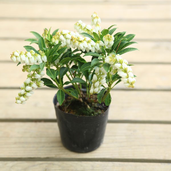 常緑樹。春にスズランのような愛らしいお花が楽しめます。コンパクトにまとまった樹形で花つきがよく、花穂が直立します。盆栽にも適しています。