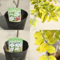 落葉樹。5月の誕生木です。斑入り葉で花のない季節でも葉だけで観賞できる品種です。 お花は赤花と白花種があります。