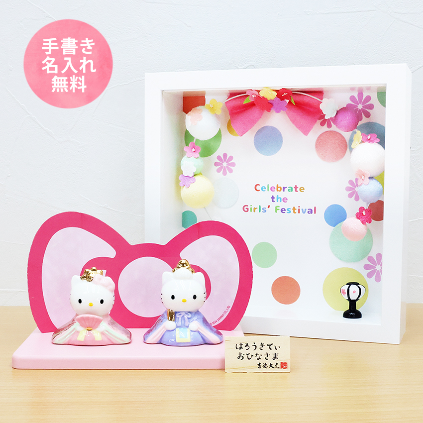 | 大人気のキャラクター、キティのかわいいひな人形。陶器製なので光沢があります。コンパクトサイズですので場所を選ばす、机の上にも簡単に置けるお雛様です。写真と一緒に楽しむひなまつり…毎年写真を変えたりしてアレンジを楽しむことができるお雛様です。写真立てはL判(127×89mm)で縦横どちらにも対応できます。 |
