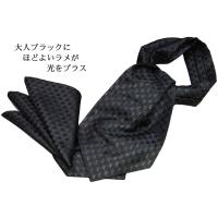 アスコットタイ&ポケットチーフ セット 結婚式 黒 ブラック ラメ入りがおすすめ セット 日本製 卒業式 成人式 プレゼント 衣装