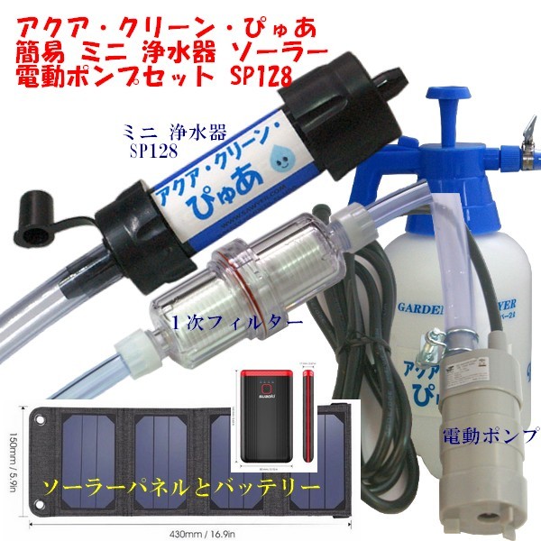 アクア・クリーン・ぴゅあ ソーラー 電動 簡易 浄水器 手動 ポンプ ソーヤ ミニ SP128 タイプ 防災 セット 緊急時 飲料水製造 非常時 キャンプ