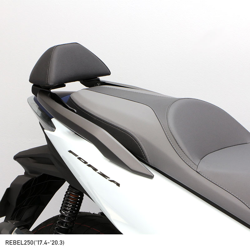 タンデムライディングには欠かせないバックレスト! 安定感のある大きめのバックレストを採用。 ▼ BOXベースの使用もご検討されている方は