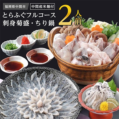 ふるさと納税 中間市 とらふぐフルコース【刺身菊盛・ちり鍋】〆はマルゴめん(中間市新名物米粉麺)九州の味を堪能 豪華2人前