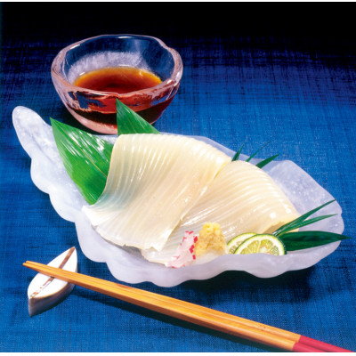 イカソーメンは切身にしてのお届けですのでお好みでわさび醤油又は生姜醤油にてそのままお召し上がり下さい。