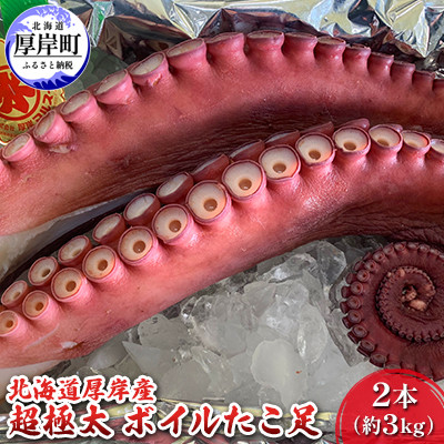 ふるさと納税 厚岸町 【北海道厚岸産】超極太ボイルたこ足 2本(計3kg) 刺身&調理用<お好きなサイズにカット可能>