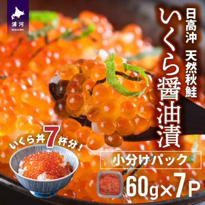 ふるさと納税 浦河町 【ブリスモーク&鮭スティック付】北海道日高産 いくら醤油漬小分けパック(60g×7)[15-546]