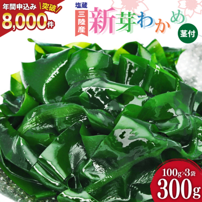 ※2024年12月31日時点 累計申込み8,000件突破わかめを採取する時期は大体2月頃から始まり4月頃最盛期を迎えます。2〜3月、寒中に生えてくる新芽を地元漁師さん達は昔から食べていました。若い新芽(わかめが成葉になる前に収穫します)を早採りし、サッと茹で上げた新芽わかめは、葉はもちろん茎までやわらか。春先だけに収穫できる大変希少なわかめです。柔らかくもシャキシャキとした心地よい食感と豊かな風味がたまりません。■品質へのこだわり「HACCP」認証工場で、衛生管理は万全です。海藻類は育てる場所や深さによって品質に違いが出るため、様々な条件ごとに原料管理を約400種類もおこなっております。最も高品質なわかめを厳選して「三陸産わかめの美味しさ」をそのままにお届けします。【お申し込み前に必ずご確認ください】・簡易包装でお受取人様の郵便受けに配達いたします。・配達日時の指定や返礼品発送後のお届け先の変更のご要望はお受けできません。・宛名ラベルのご依頼主欄には、返礼品の発送手配をおこなう「結デザイン有限会社」と記載され、当自治体の返礼品と分かる記載があります。・寄附者様とお受取人様が異なる場合、宛名ラベルのご依頼主欄には寄附者様のお名前は記載されません。・配送中および配達後のトラブル(紛失・破損・盗難など)や、その他お受取人様都合で配達できなかった場合、返品・交換・再送のご要望はお受けできません。・万が一発送困難な場合は、翌シーズンの発送、もしくは当自治体の別のお品(同一金額以下)をお選びいただくことがございます。・返礼品が届きましたら、すぐに開封し中身のご確認をお願いいたします。・返礼品に傷みや損傷、品質不良などの異常があった場合、お受け取り後2日以内に【問合せ先】のアドレス宛にお問い合わせください。その際に、当該部分、全体、外箱の写真もあわせて送付をお願いいたします。・お受け取り後3日以上経過したものについては、返品・交換などの対応はお受けできませんので、あらかじめご了承ください。■内容量計300g(100g×3p)■賞味期限発送より2ヶ月(涼しい場所または冷蔵庫で保管ください)■地場産品基準気仙沼市内において返礼品等の製造、加工その他の工程のうち乾燥加工などの主要な部分を行うことにより相応の付加価値が生じているものであるため。(告示第5条第3号に該当)