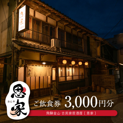 ふるさと納税 下呂市 【飛騨金山 古民家 居酒屋 恩家】ご飲食券(3,000円分)下呂市 おんや【a032-1】