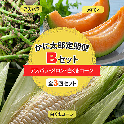 ふるさと納税 旭川市 【発送月固定定期便】かに太郎定期便Bセット アスパラ・赤肉メロン・白くまコーン_01597_全3回