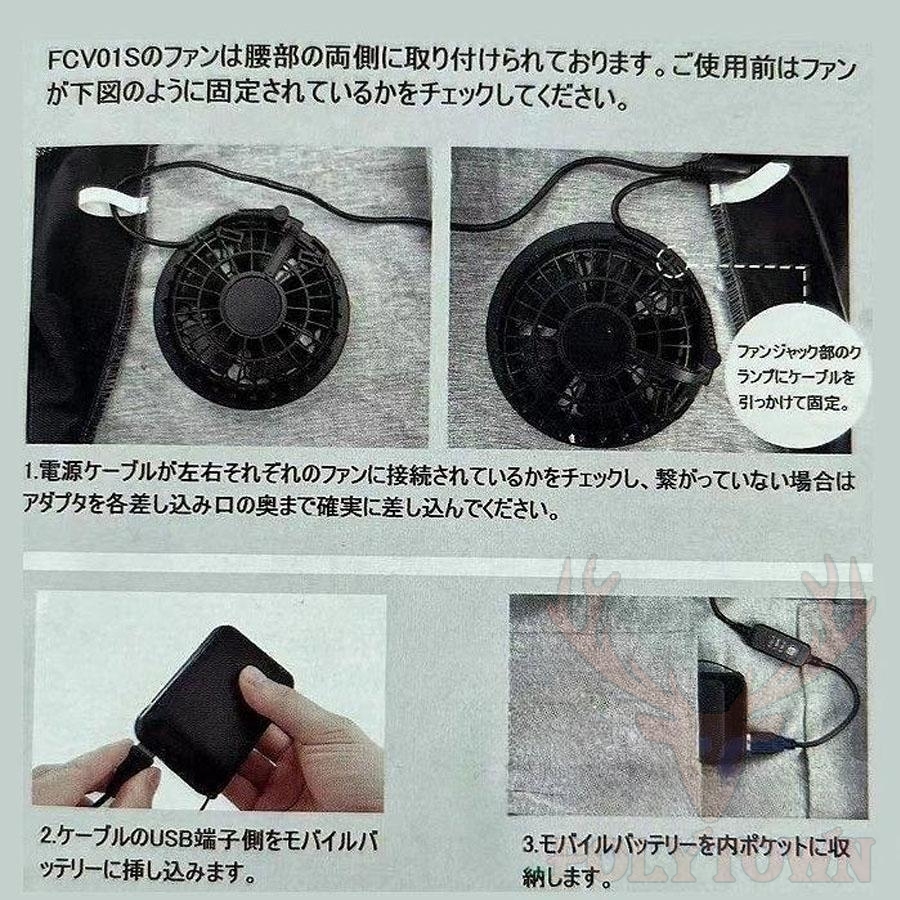 ●空調ウェアは水洗い可能ですが、洗濯前に、必ず電池、ファン、電源ケーブルを取り外してください。