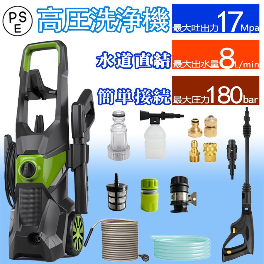 【17MPa】高圧洗浄機 1800W 水道接続 50度の温水 東西日本兼用 二重絶縁 強力噴射 家庭用 業務用 自吸両用 節電 高圧クリーナー 省エネ PSE認証済み 年末大掃除