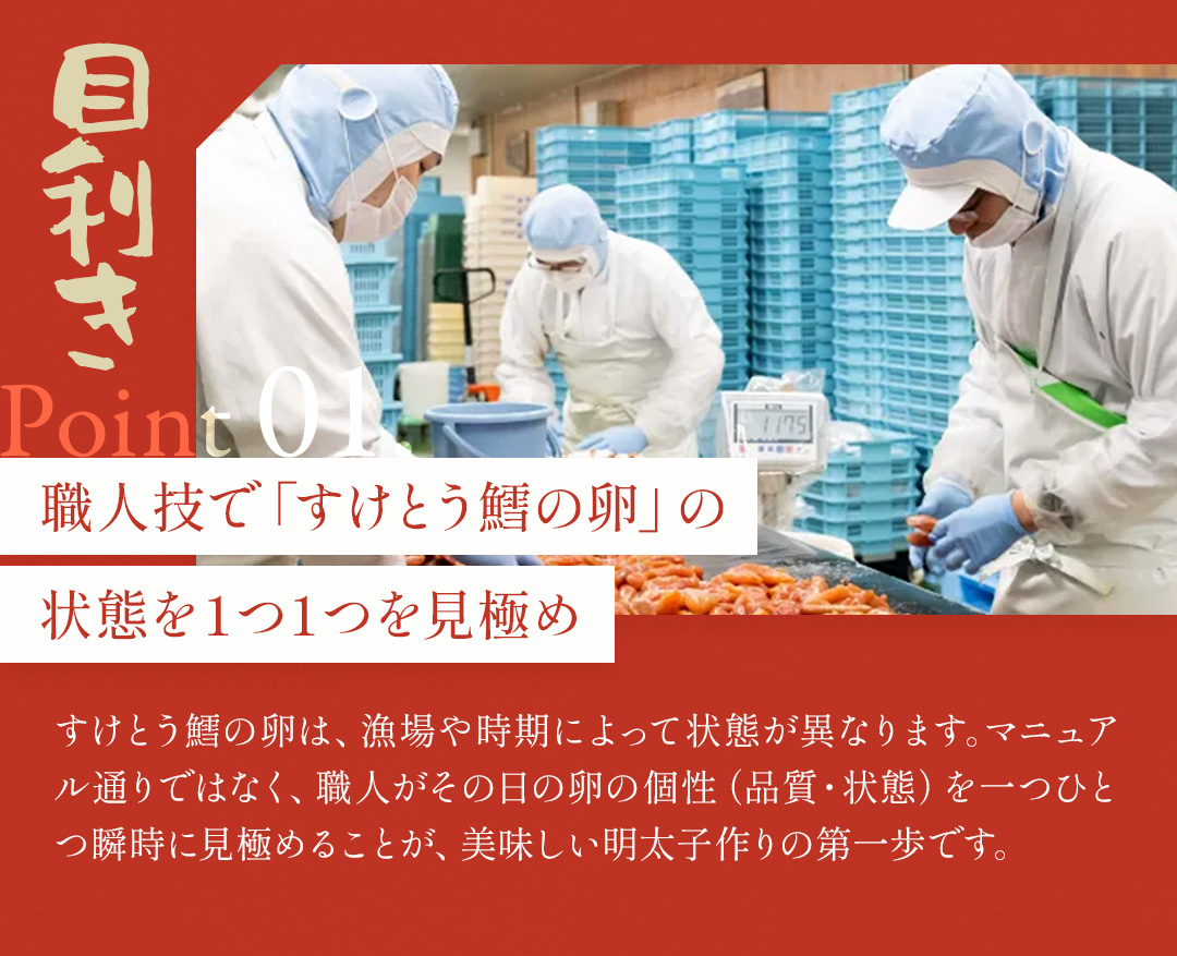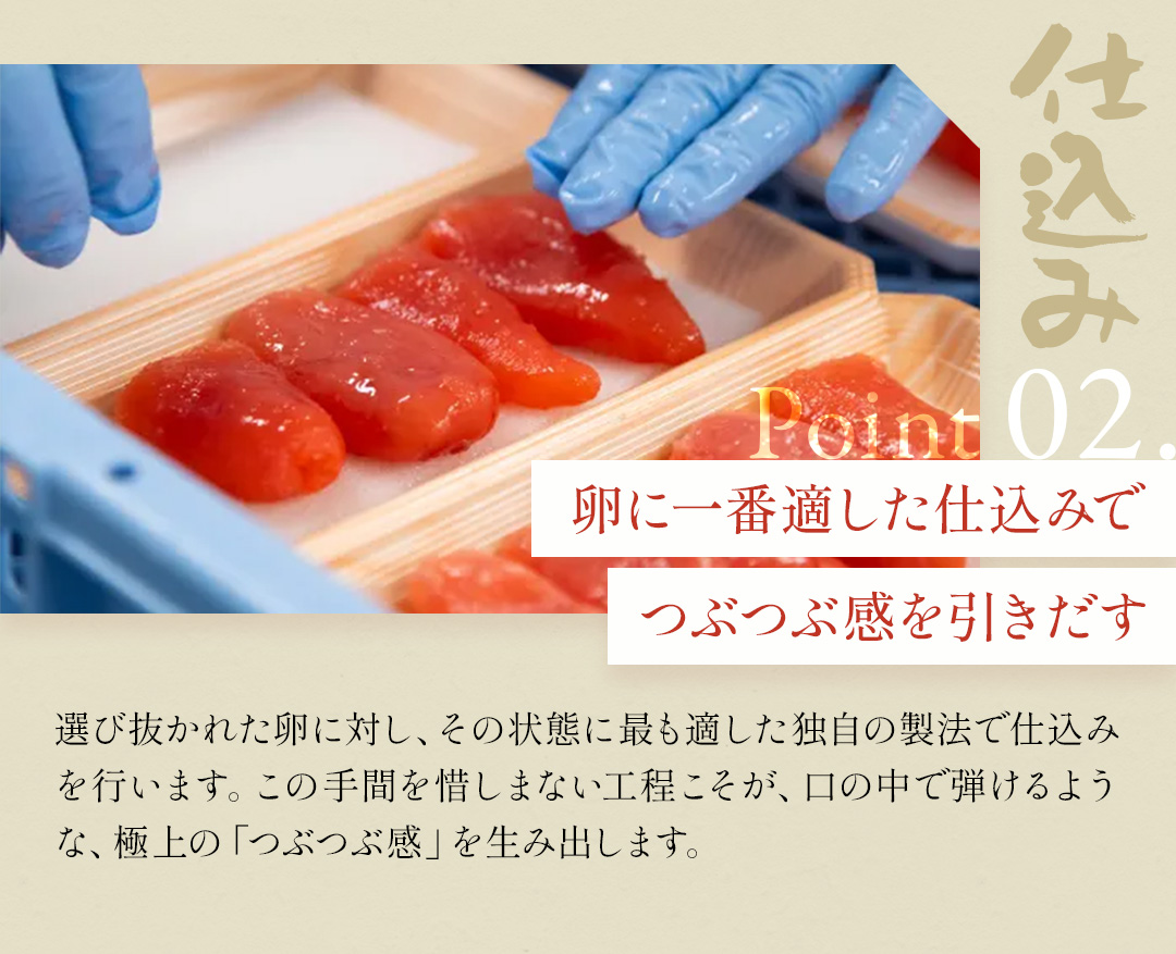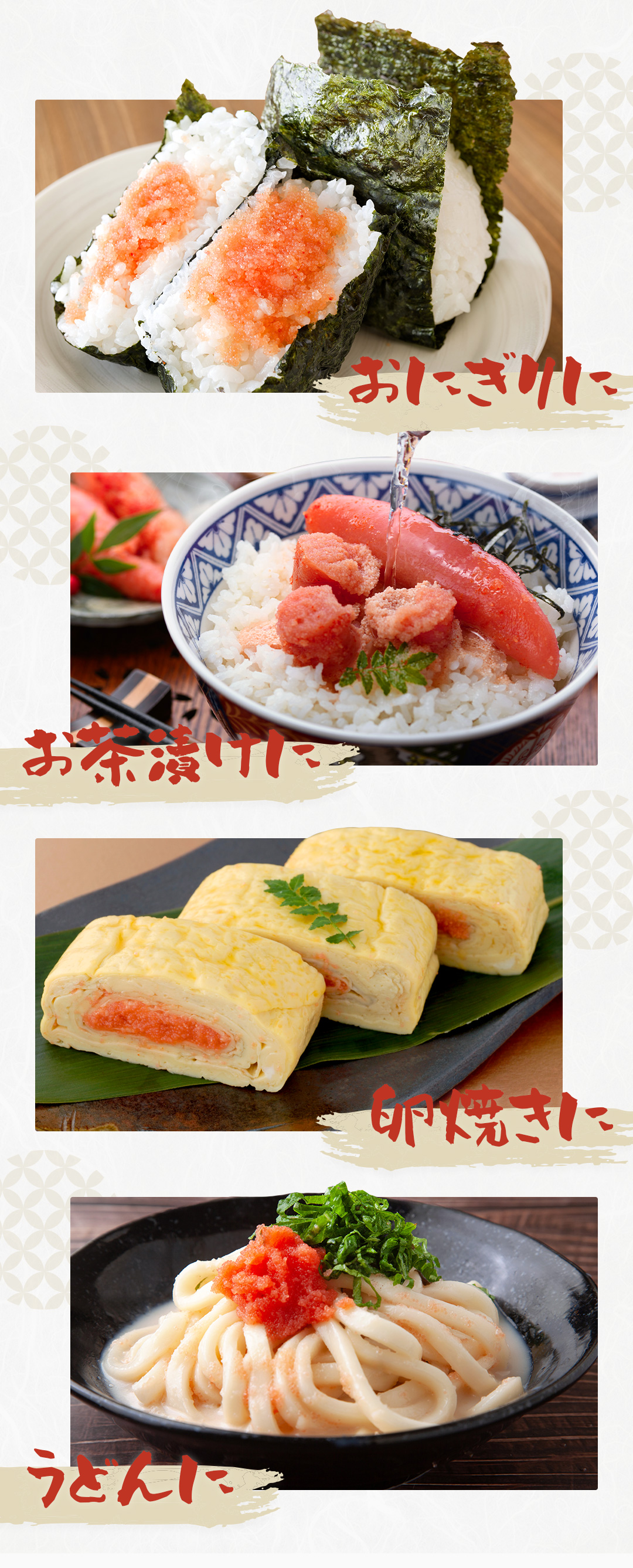 ■原材料名 すけとうだらの卵(ロシア又は米国)、食塩、酒精、発酵調味料、唐辛子、かつおエキス、こんぶエキス、たん白加水分解物/調味料(アミノ酸等)、甘味料(ソルビトール)、酸化防止剤(V.C)、酵素、着色料(赤102、黄5、赤3)、発色剤(亜硝酸Na)、(一部に乳製品・小麦・大豆・ゼラチンを含む)
