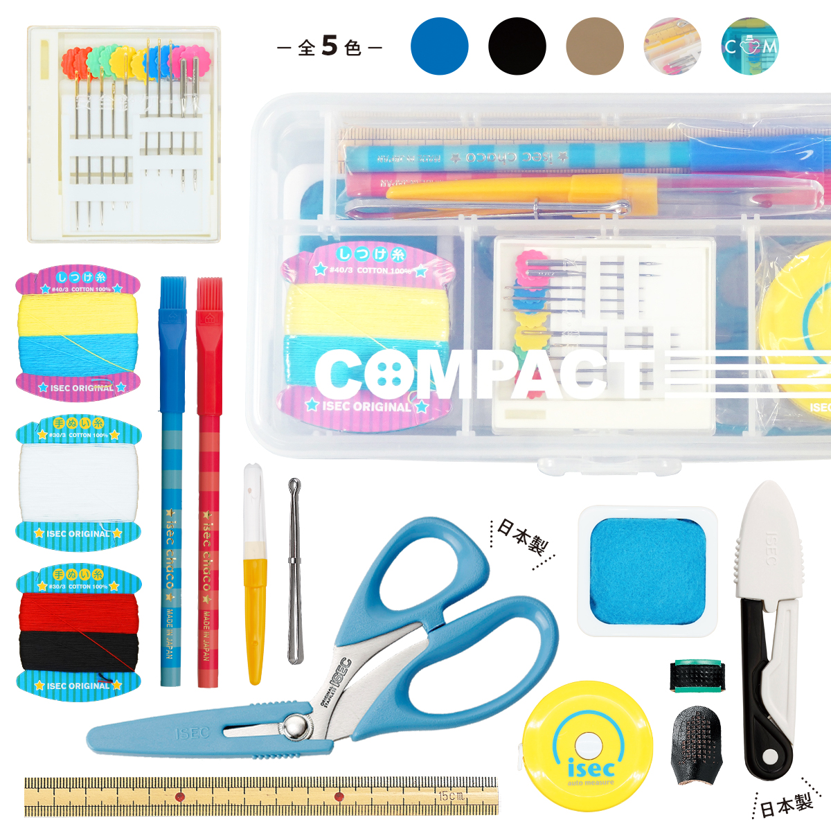 裁縫セット コンパクト 小学生 小学校 女子 男子 日本製 国産 裁ちばさみ 糸切りばさみ ソーイングセット 裁縫箱