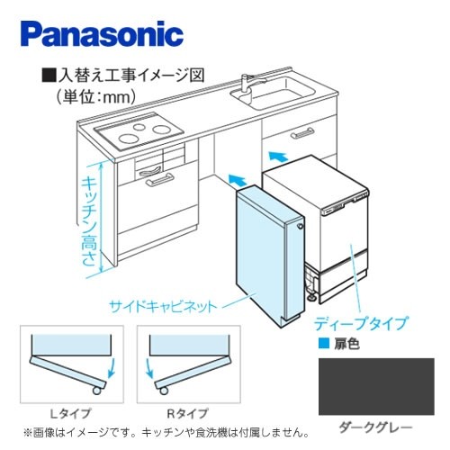[AD-KB15AH85L]キッチン高さ85 cm対応 Lタイプ(左開き) ダークグレー 幅15cm幅サイドキャビネット(組立式) パナソニック 食器洗い乾燥機部材【送料無料】