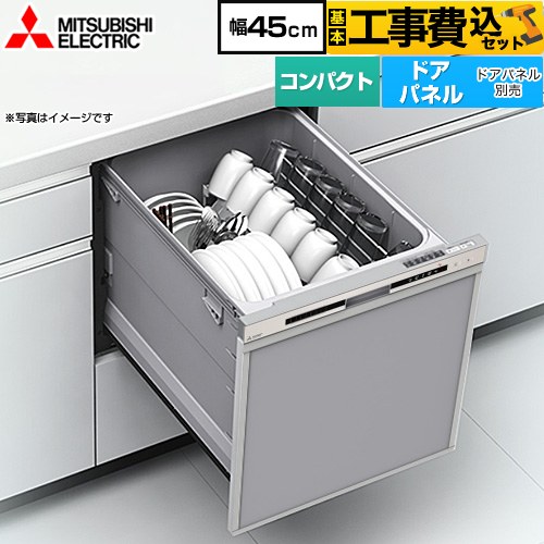 工事費込みセット EW-45R3シリーズ 食器洗い乾燥機 コンパクトタイプ 浅型 三菱 EW-45R3S ドアパネル型 シルバー