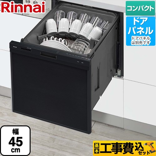 工事費込みセット 食器洗い乾燥機 ミドルタイプ(浅型) リンナイ RSW-405AA-B ドアパネル ブラック