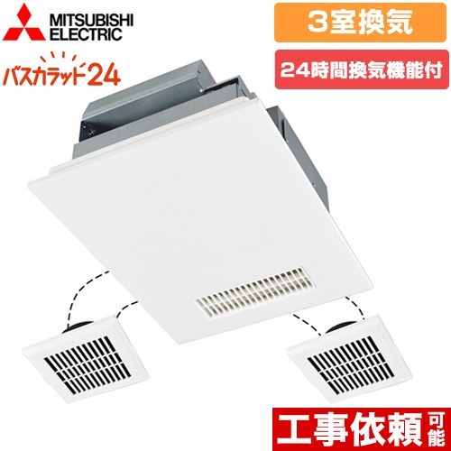 | 仕様・ 特徴 | 浴室・洗面所・トイレ 向け 3室換気(1部屋暖房/3部屋換気) 新築集合・戸建住宅向 24時間換気機能付換気扇 ACモータータイプ 接続パイプφ100mm 天井埋込寸法420×300mm 24時間換気機能付 バス乾燥・暖房・換気システム 単相100V 野縁埋込寸法:415×295mm ※1部屋換気(浴室のみ)では使用できません。 浴室と洗面所・トイレ等の3室同時換気 ※暖房機能は浴室のみ。 衣類乾燥・浴室乾燥・暖房・涼風・換気の1台5役 お掃除しやすいフラットパネル採用 暖房・乾燥用PTCセラミックヒーター搭載 ヒーターを使用しない「風乾燥」機能付 循環ファンによる涼感効果(夏期) 温度過昇防止用サーミスタ・ヒューズ付 トイレ(外部)スイッチ遅延タイマー設定機能付 浴室換気ダンパー 低騒音設計 最大12時間「入・切」タイマー 24時間換気機能付 換気風量強弱切換可能 風圧式シャッター付(排気) 配線容易(コントロールスイッチはコネクターワンタッチ接続(本体側電源2芯、アース1芯、コントロールスイッチ3芯)) 速結端子接続 スライド脱着式(据付枠同梱) 副吸込口はA・B・Cの3方向選択可能 |