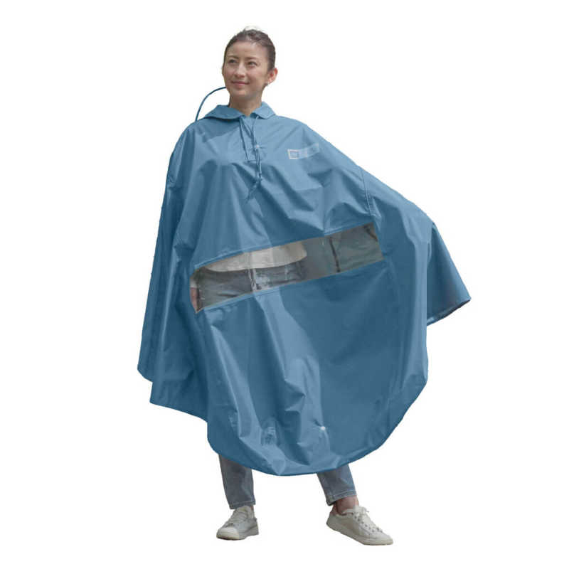 ポンチョ型だから、急な雨でも素早く着用できる。