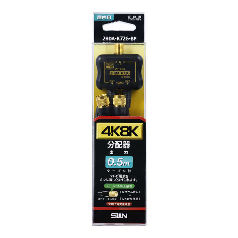 サン電子 4K8K対応ローレットケーブル付2分配器 2HDAK72GBP