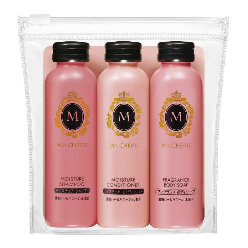 ボディソープ、モイスチュアシャンプー・コンディショナーのトラベルセット。