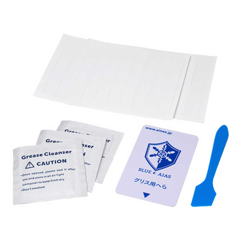 仕様1:・フリーサイズ塗布用枠テープ (10×70mm)×20片・グリス用ウェットクリーナー×3・グリス塗布用カード型へら×1・グリス塗布用へら×1