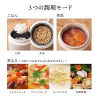 逆支弁構造で、食材を入れたまま持ち運びができるので出先で出来立てのおかゆを食べられる。