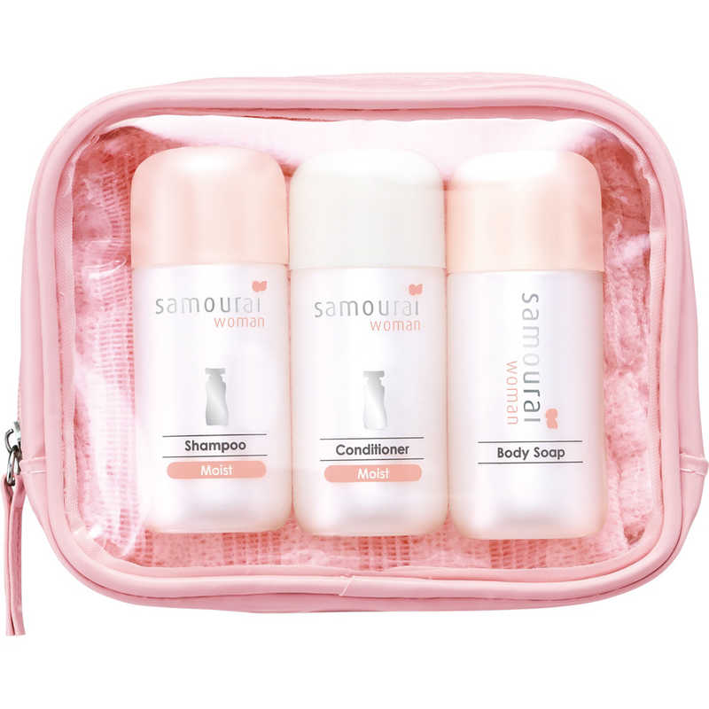 これ1つで完結!シャンプー・コンディショナー・ボディソープに泡立てボディタオルがセットになった便利なトラベルセット。