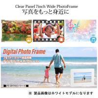 【商品解説】デスクやリビングなどで、お気に入りの動画や写真を手軽に楽しめる7型ワイド高解像度(800×480)液晶搭載のデジタルフォトフレームです。