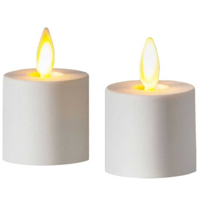 ●電池タイプとなります。コイン型電池(CR2450)が1個必要となります(工場出荷時のテスト電池入り)●電池式のティーライトタイプ。ハンギングタイプのホルダー使用時にも、リモコンが使えるので便利です。※本製品は本物のロウで出来ていない商品です。※本製品は防水仕様ではありません。※以前のティーライトタイプに比べて高さが6mm程低くなります。