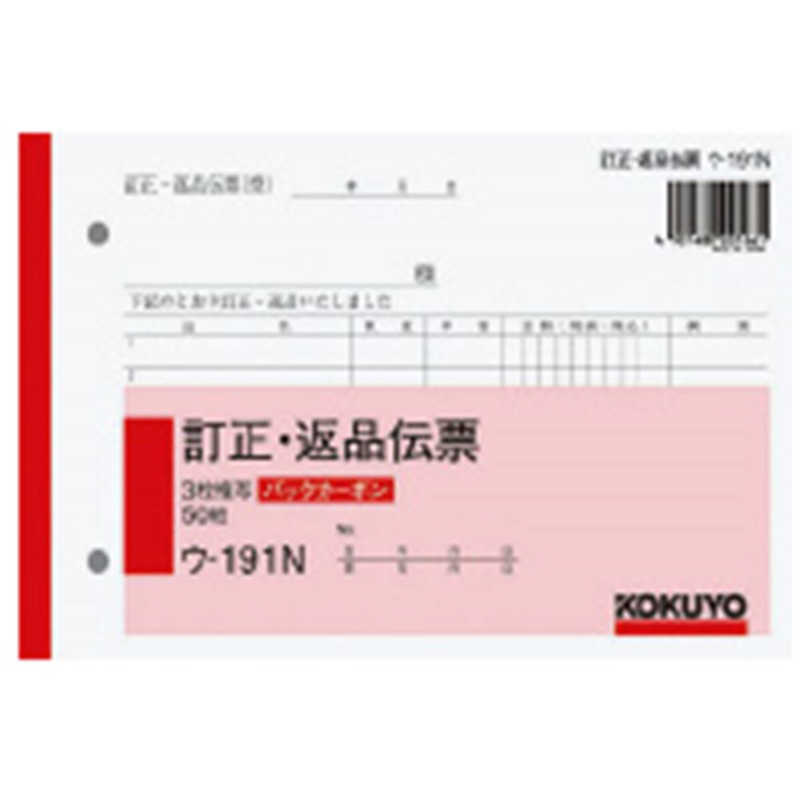 コクヨ BC複写簿B63枚訂正返品伝票 ウ-191N