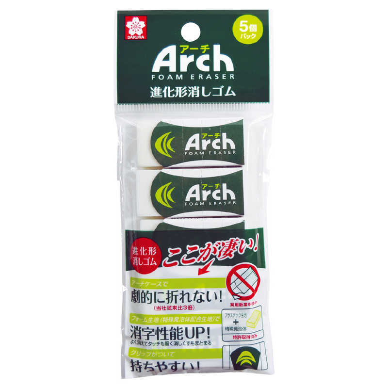 【商品解説】【アーチフォームイレーザーの特長】●新形状:アーチケースで劇的に折れない!ケース前部をアーチ形状にすることで、食い込み部分への負荷を大幅に軽減。