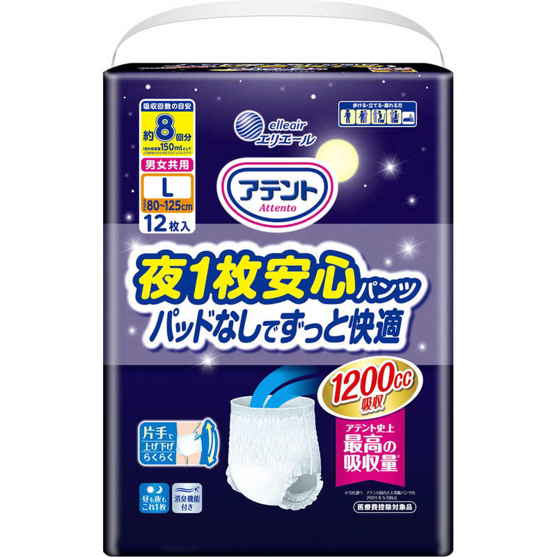 【商品解説】アテント紙パンツ史上最高の約8回分(1回の排尿量150mlとして)をしっかり吸収。