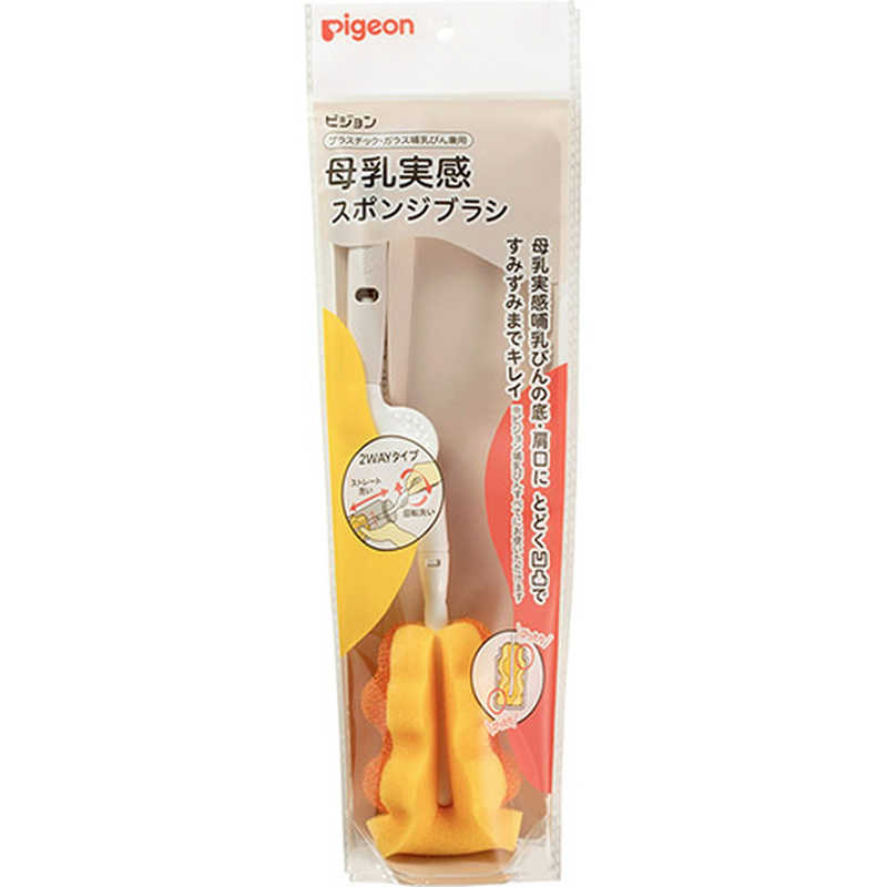 【商品解説】母乳実感哺乳びんの底・肩口にとどく凹凸ですみずみまでキレイに洗える洗浄ブラシ。