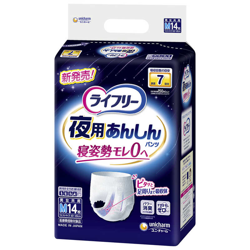 【商品解説】高齢者特有の足周りのモレを防ぐ夜用パンツ。