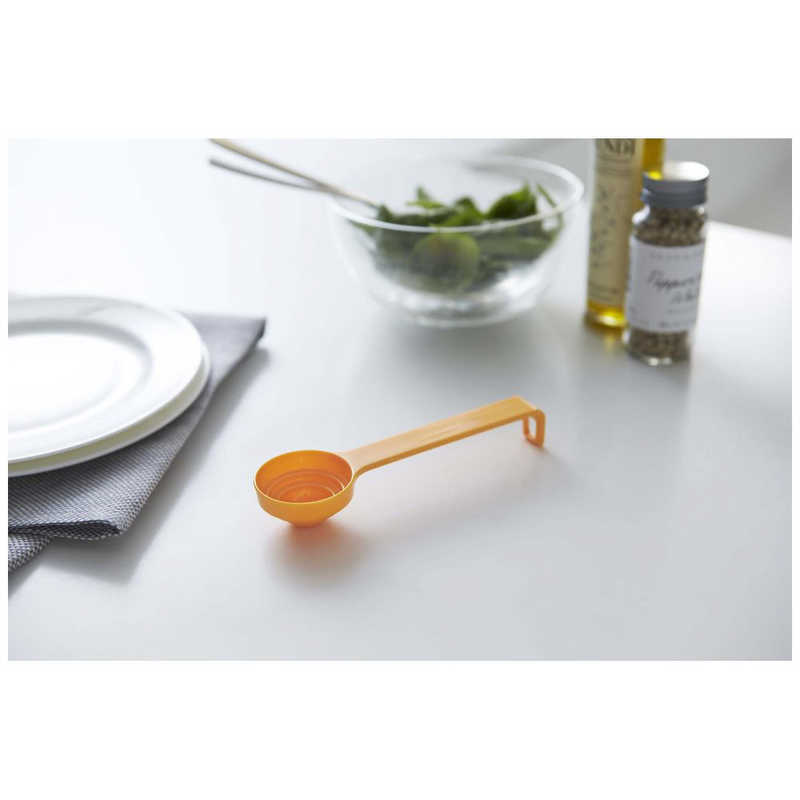 【商品解説】段差メモリで大さじ・小さじ・小さじ1/2がこれ1本で簡単計量。置いて注げるので便利です。