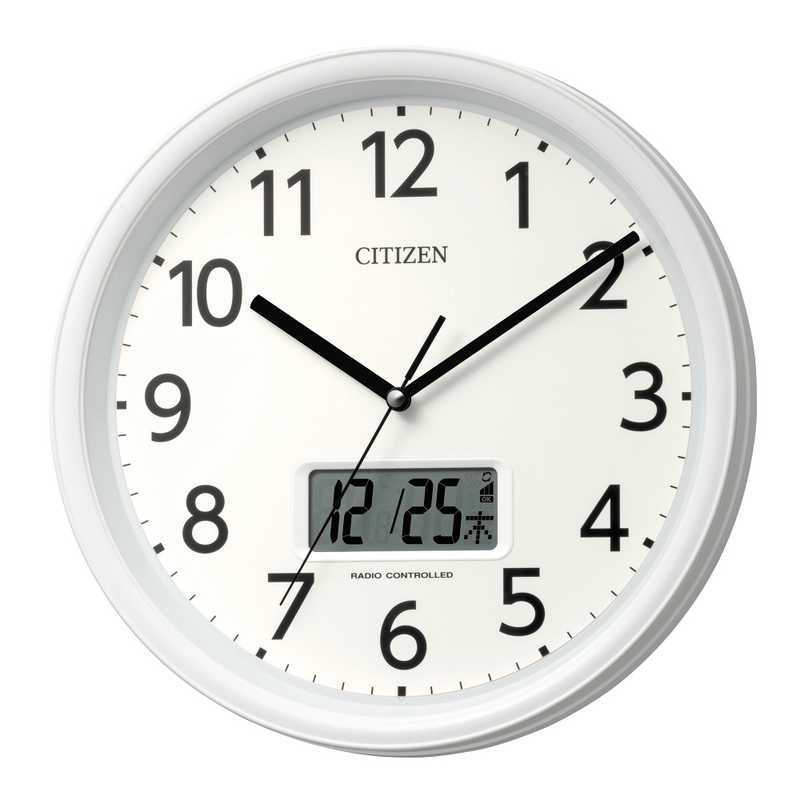 【商品解説】「カレンダー」と「温湿度計」を2in1にしたことで、情報の多いままインテリアに合わせやすいシンプルなデザインを実現した電波掛け時計です。