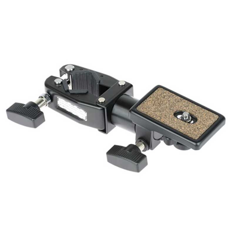 ローポジションにセットできない三脚でも、クランプヘッドを使えばカメラをローポジションにセット可能です。また、センターポール部に取り付けてサブカメラを構える、ポール等と組み合わせてライティングサポートに使用するなど撮影の幅が広がります。