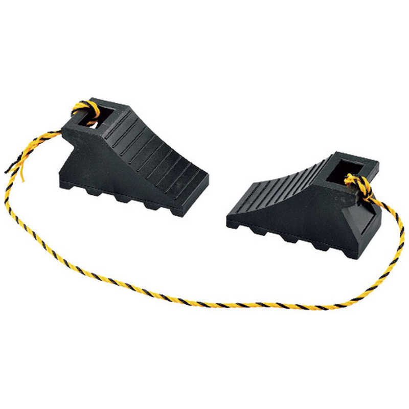 日本緑十字 緑十字タイヤストッパー(輪止め)大型車用(10t車迄)黒タイヤストッパー5BK2個組(トラ柄ロープ12m連結)樹脂製 120006