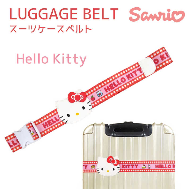スーツケースの目印にもなる、ハローキティデザインのスーツケースベルト。