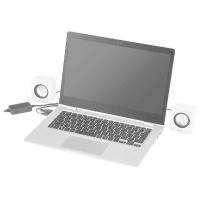 実用最大出力3.6W(1.8W+1.8W)のハイパワー仕様。ノートパソコンの内蔵スピーカーでは満足できないユーザーに最適です。手元で簡単に音量調整可能。ボリュームコントローラー付き