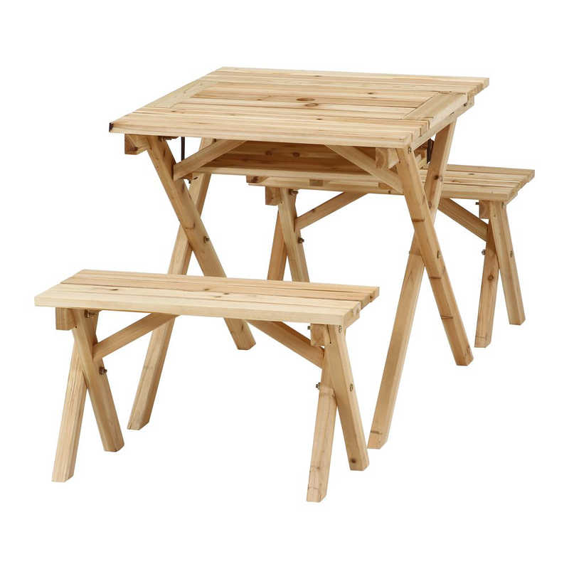 不二貿易 BBQテーブル&ベンチセットミニ コンロスペース付 NA ナチュラル 84523