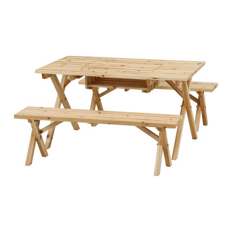 不二貿易 BBQテーブル&ベンチセット コンロスペース付 NA ナチュラル 84524