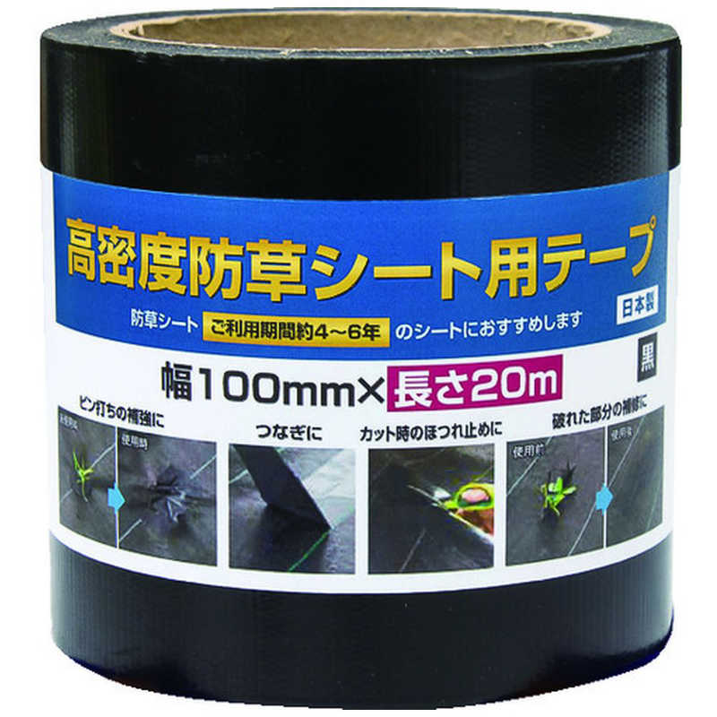 ●ピンの打ち込み後の補強や、破損個所の補修はもちろん、敷設時のシートのつなぎ合わせ、切り口のホツレどめ、など幅広く活用できる防草シート専用テープです。